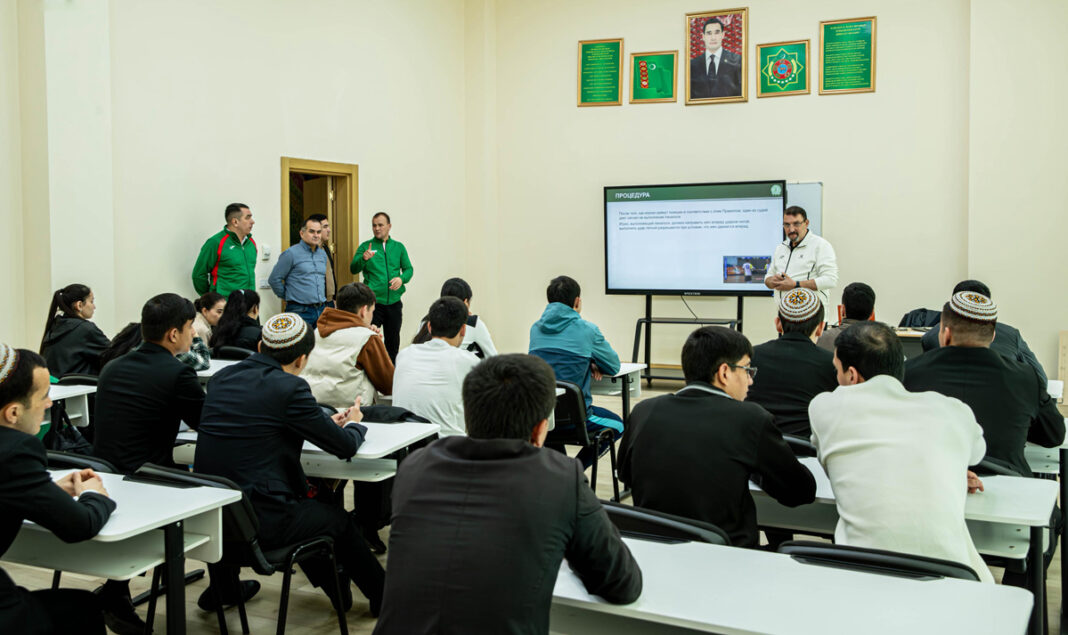 The program is being implemented at the institute’s academic building. Around 30 students who have chosen the refereeing career are participating. They are taught the intricacies of refereeing by Charymyrat Gurbanov, head of the FFT refereeing department; Vadim Baratov, a specialist with the Futsal Federation; and Kakabay Seidov, senior lecturer at the institute and international referee.